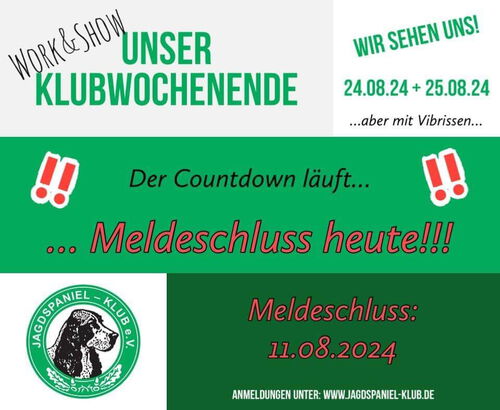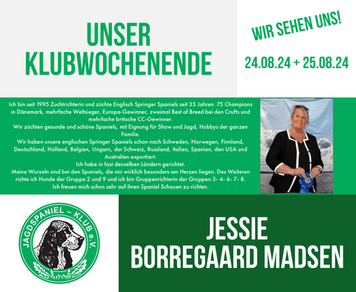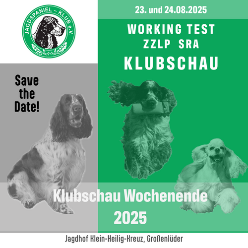 Im DJ 3/25 „Dogs with Jobs“ wollen wir Berichte und Bilder von Spanieln aus ihrem „Arbeitsalltag“ veröffentlichen. Haben Sie einen Spaniel mit einem Job? Schreiben Sie ein paar Zeilen und senden diese an redaktion@jagdspaniel-klub.de