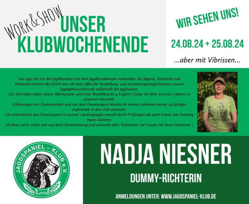 Frau Nadja Niesner, Prüfungsreferentin des Jagdspaniel Klub e.V.