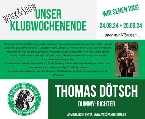 Ich möchte mich herzlich für die Einladung zum Workingtest Dummy-Klub-Sieger 2024 in Großenlüder bedanken.