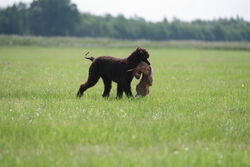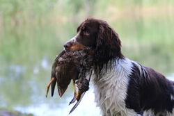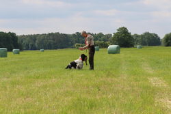 Es waren bereits Hunde im Alter von 7 Monaten bei dem Übungswochenende dabei, um sich auf die Fächer "Stöberanlage" und "Verhalten am Wasser" für die JZP vorzubereiten. Ebenso wurden erste Dummy-Schleppen gearbeitet und die Hundeführer haben den anderen Spaniels bei der Vorbereitung auf die HZP und GP zugeschaut. Für diejenigen Hundeführer, welche die Anfänge des Apports mit ihrem Spaniel arbeiten, gab es gute Tipps.