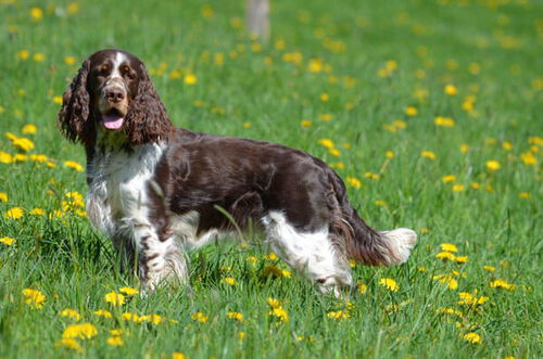 Der English Springer Spaniel ist die größte Landspanielrasse. Mit einer Schulterhöhe von ca 51 cm und einem Gewicht zwischen 20 und 25 kg. Es gibt ihn nur den den Farben braun-weiß und schwarz-weiß.