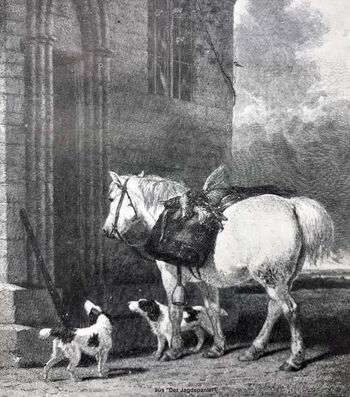 "Es gibt schnellfüßige Hunde für die Falkenbeize und Stöberhunde für die Netzjagd. Diese Hunde haben keine eigenen Namen, man nennt sie nach ihrem Gebrauch: Falkenhunde, Fasanenhunde, Rebhuhnhunde usw. Das gemeine Volk ruft ihn generell mit dem gleichen Wort, nämlich Spaniel, ... Der größte Teil des Felles ist weiß, und wenn sie mit einigen Flecken markiert sind, sind diese gewöhnlich rot und damit ziemlich auffällig..."